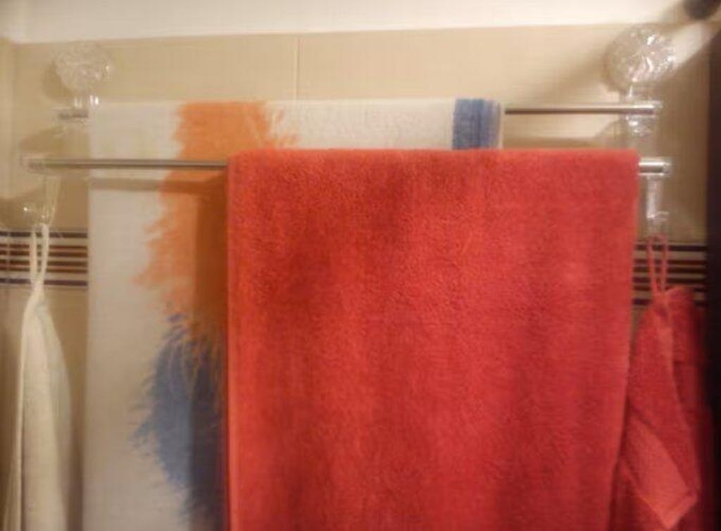El soporte puede sostener varias toallas sin problema gracias a su sistema adhesivo resistente.